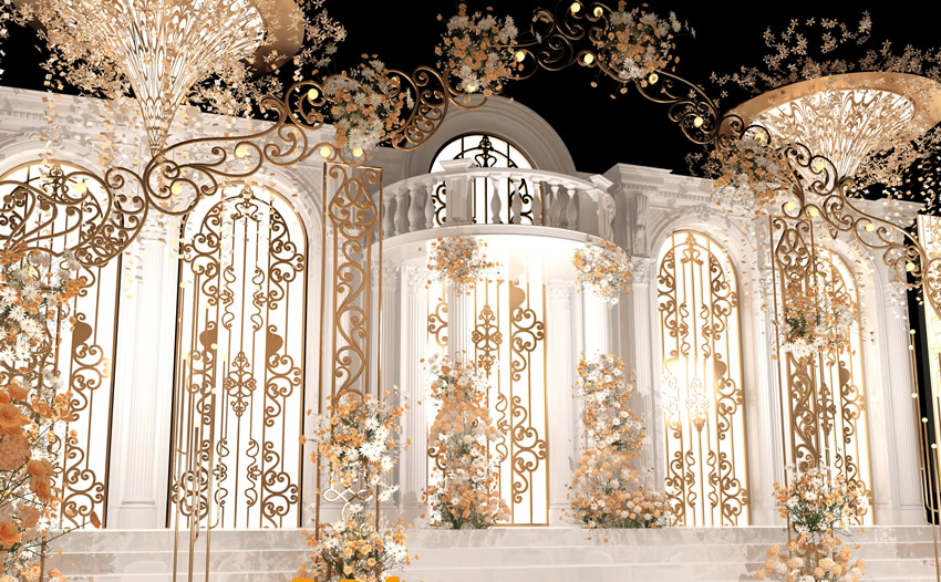 酒店婚礼堂的设计需要考虑多个方面,包括但不限于场地布置、仪式流程、餐饮服务、娱乐活动以及婚房的准备等。以下是一些关于酒店婚礼堂设计的建议: